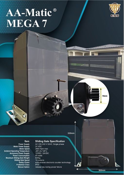 AA-Matic Mega 7 DC Sliding Motor - Buily In Type (Limit Switch)
